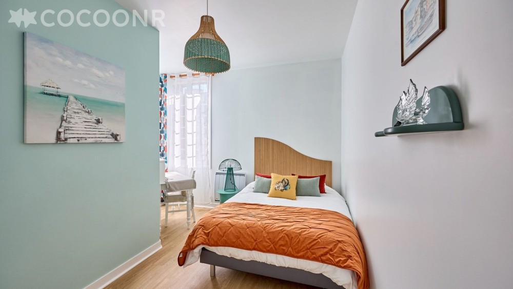 • Chambre 2 : un lit double (140×190) et espace bureau