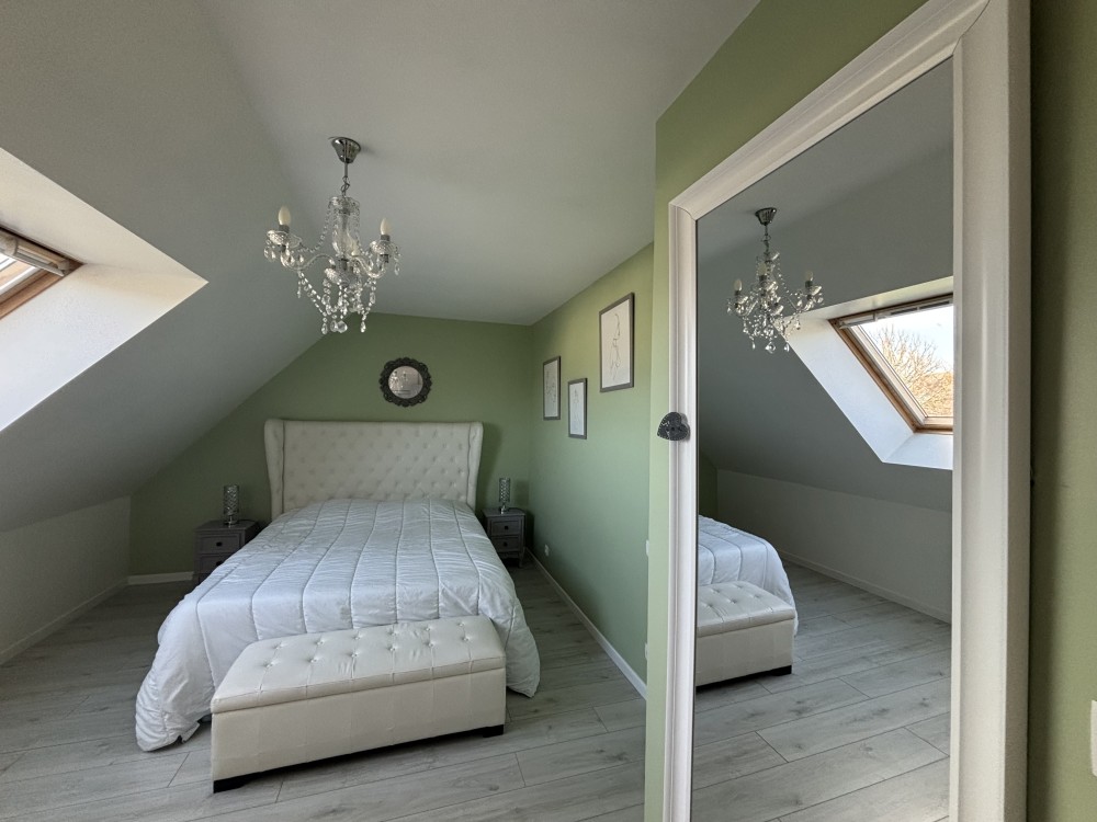 Chambre 2 : pièce de 13,5 m² avec un lit double (140×190)
